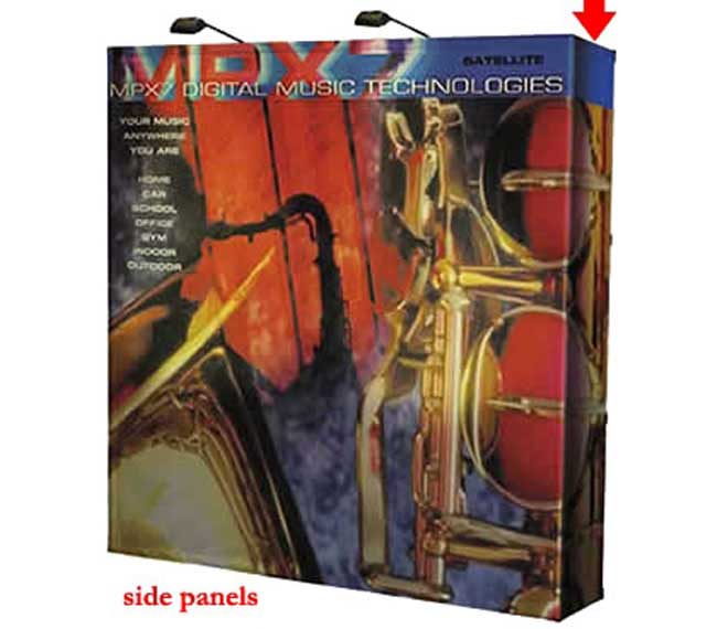 Add optional fabric end panels, lights and a molded shipping case for a complete backwall system in one package.