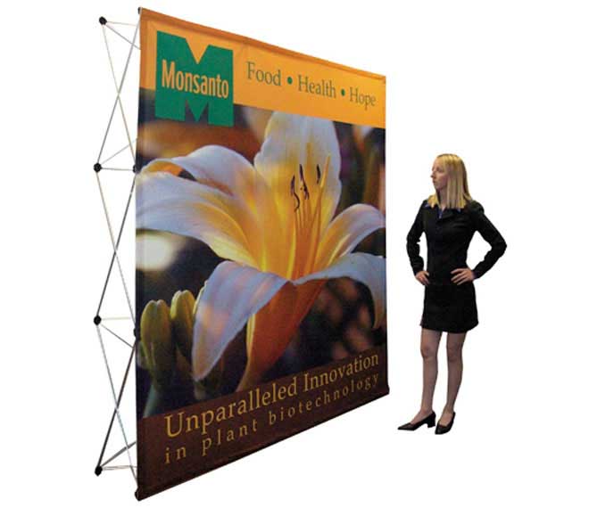 • Pop-up frame with 88″ x 88″ dye-sub fabric mural